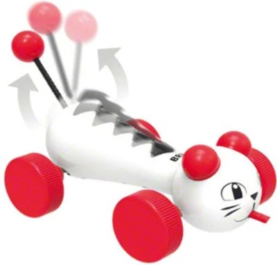 Die Nachzieh-Katze von BRIO ist der neue Wegbegleiter und Spielkamerad ihres Kindes. Die lustig designte Holzkatze kann man an dem dafür vorgesehenen Seil hinter sich her ziehen. Ihre großen, roten Räder sind perfekt dafür und machen auch vor unebenem Boden kein Halt. Sie wartet gespannt auf jedes neue Abenteuer, welches sie zusammen mit ihrem neuen Spielgefährten erleben darf!