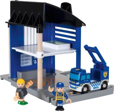 Das Einsatzfahrzeug kann direkt in die Polizeistation fahren, den Sträfling ausladen und im Aufzug in die Gefängniszelle im oberen Stockwerk transportieren. Schnell die Gitterluke verriegeln und schon sitzt der Bandit sicher in der Zelle.