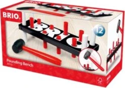 Mit diesem lustigen Spiel können schon die Kleinsten wie Bob der Baumeister mit einem Hammer werkeln. So können von beiden Seiten die roten Dübel in die Werkbank geklopft und gehämmert werden. Ganz nebenbei wird so noch die Hand-Auge-Koordination der Kleinen geschult.