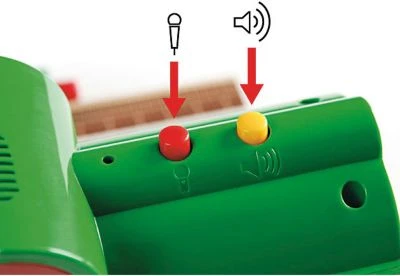 Sprich deine eigenen Ansagen drauf! Dieser interaktive Bahnhof hat Knöpfe zum Aufnehmen und Abspielen von Ansagen.