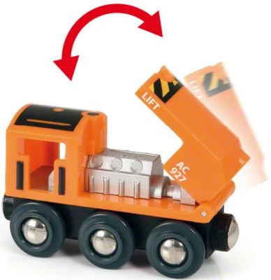 Das Set ist vollgepackt mit Maschinen – einem Verladekran, einem Lastwagen, einer Lok mit Klappe und einem Anhänger mit Ladung. Auch ein Warnsignal, ein Baum und ein kleiner Berg, durch den du mit der Bahn rasen kannst, fehlen nicht. Hebe die Ladung mit dem Kran vom Lastwagen, drehe den Kran und lade die Ladung auf dem Waggon ab. Passt ausgezeichnet zu allen Produkten der BRIO World.